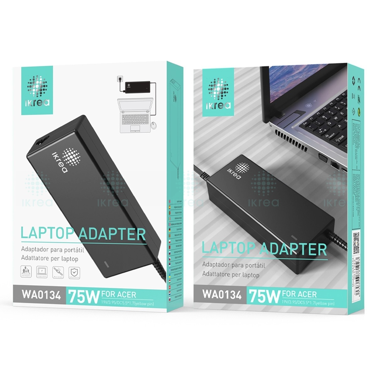 IKREA WA0134 ADAPTADOR PARA PORTÁTIL 75W 19V 3.95A DC5.5*1.7 YELLOW PIN FOR ACER
