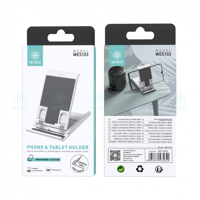 IKREA WE5103 SOPORTE UNIVERSAL AJUSTABLE CON 6 POSICIÓNES PARA MOVIL Y TABLET(4-12.9 INCH) BLANCO