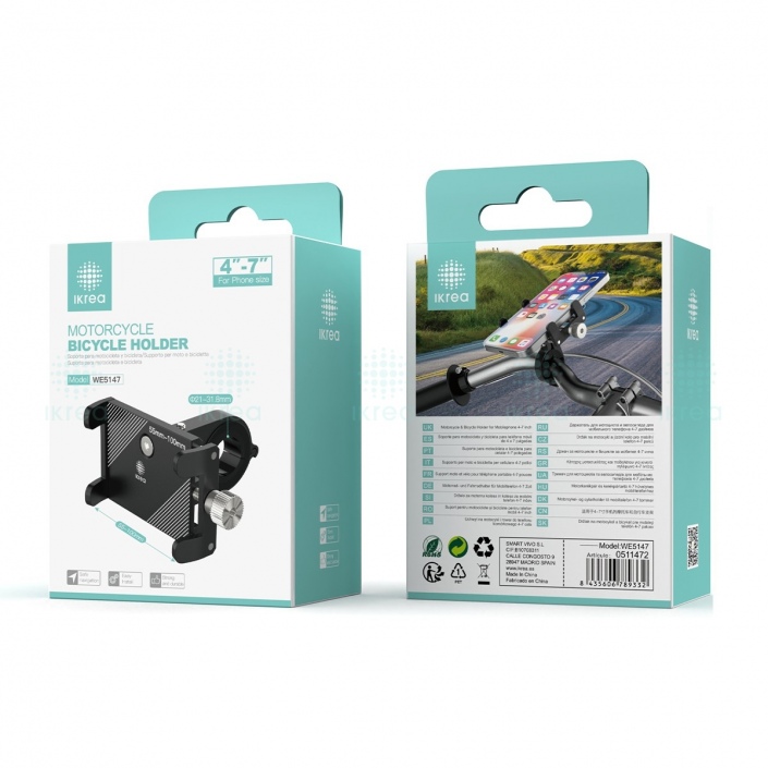 IKREA WE5147 SOPORTE DE MÓVIL 4-7´´ AJUSTABLE PARA BICICLETA/MOTO NEGRO