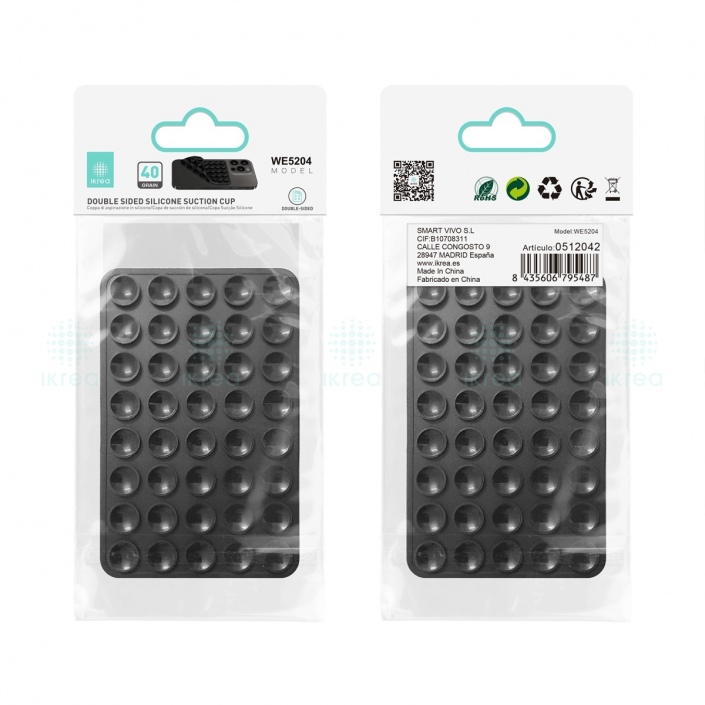 IKREA WE5204 SOPORTE DE SUCCIÓN DOBLE CARA DE SILICONA CON 40 VENTOSAS PARA MÓVIL NEGRO