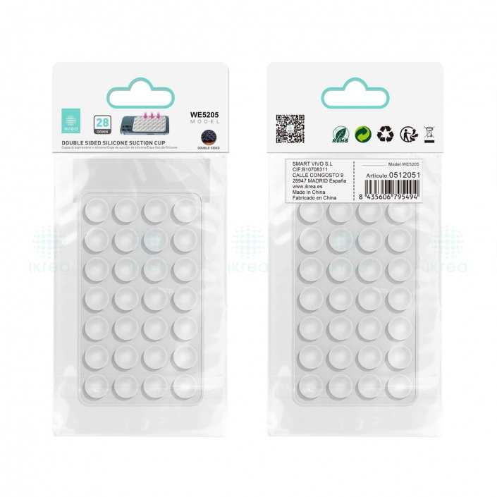 IKREA WE5205 SOPORTE DE SUCCIÓN DOBLE CARA DE SILICONA CON 28 VENTOSAS PARA MÓVIL BLANCO