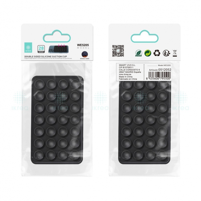 IKREA WE5205 SOPORTE DE SUCCIÓN DOBLE CARA DE SILICONA CON 28 VENTOSAS PARA MÓVIL NEGRO