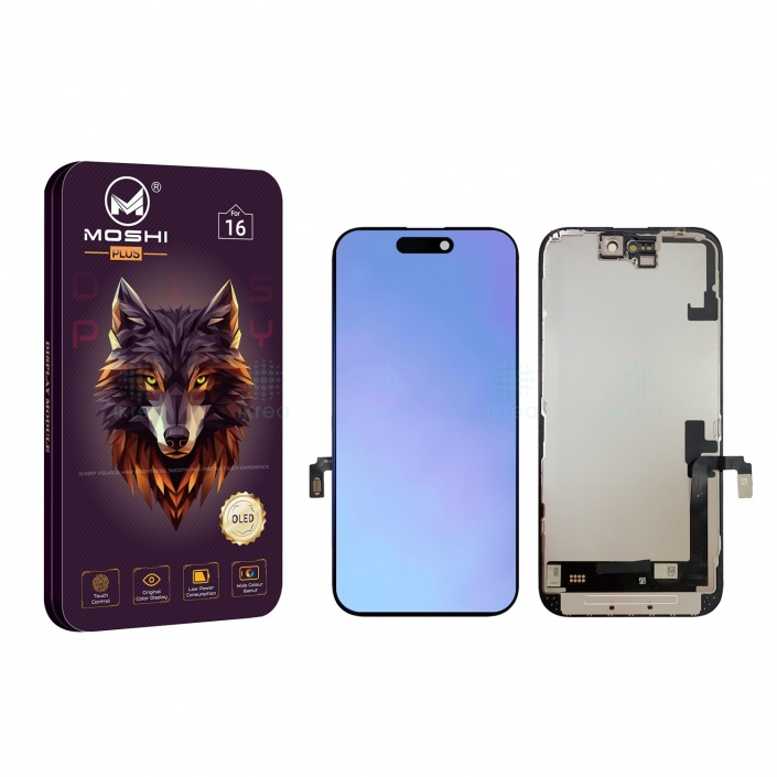 Pantalla completa para iPhone 16 negra OLED DURA(MOSHI PLUS)
