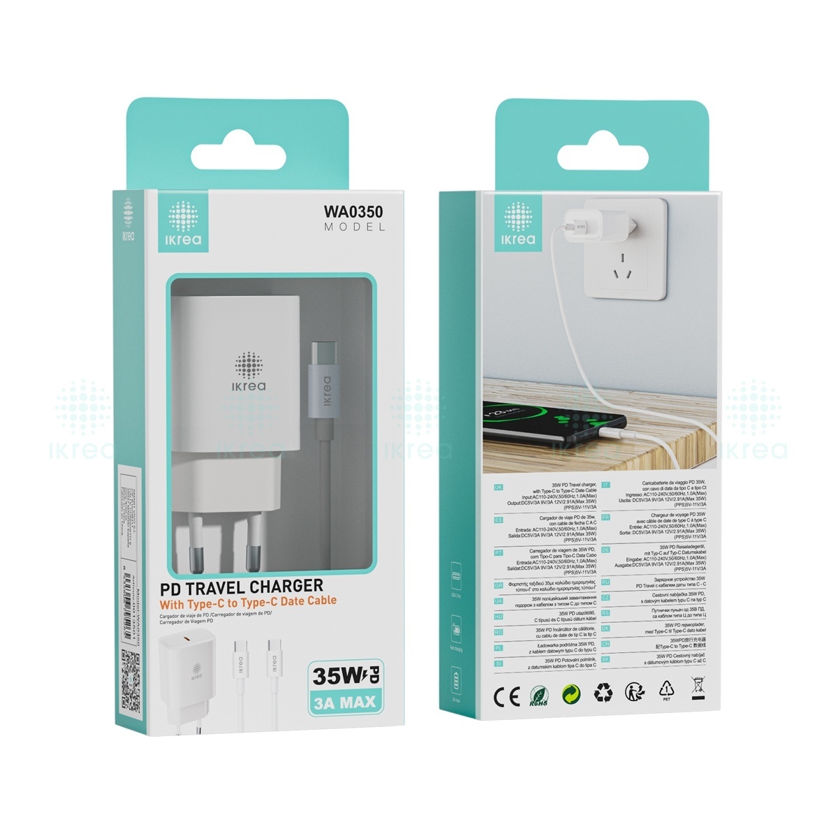 IKREA WA0350 CARGADOR PD CON CABLE TYPE-C TO TYPE-C 35W 3A MAX BLANCO