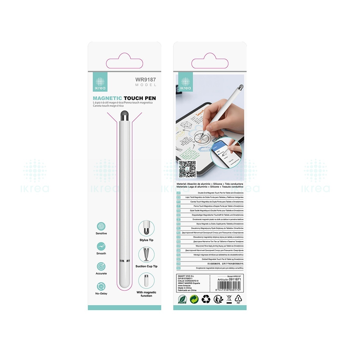IKREA WR9187 LÁPIZ ÓPTICO MAGNÉTICO UNIVERSAL DE DOBLE PUNTA BLANCO