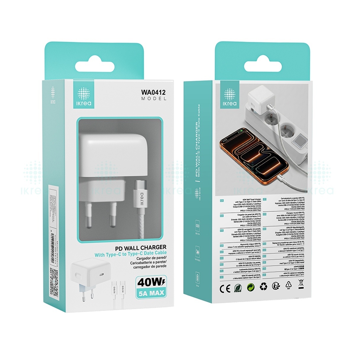 IKREA WA0412 CARGADOR TYPE-C PD CON CABLE TYPE-C TO TYPE-C 40W 5A MAX BLANCO