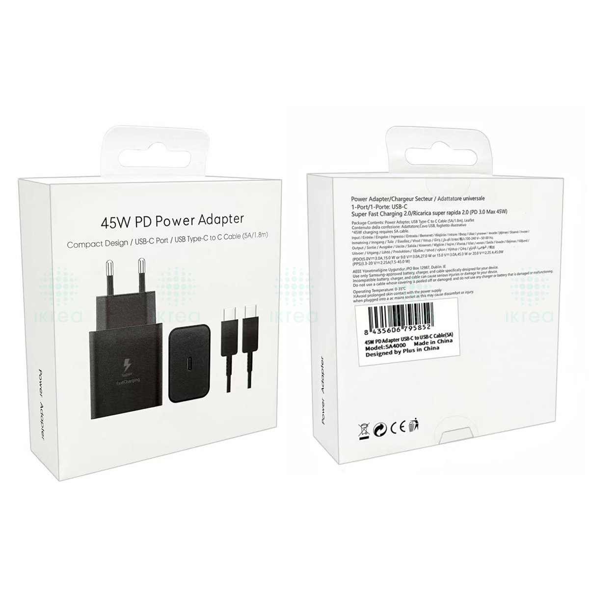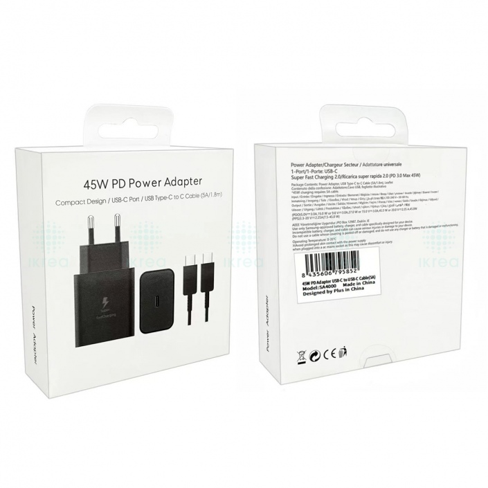 WA0358 CARGADOR PD CON CABLE USB-C TO USB-C 45W 5A 1M NEGRO