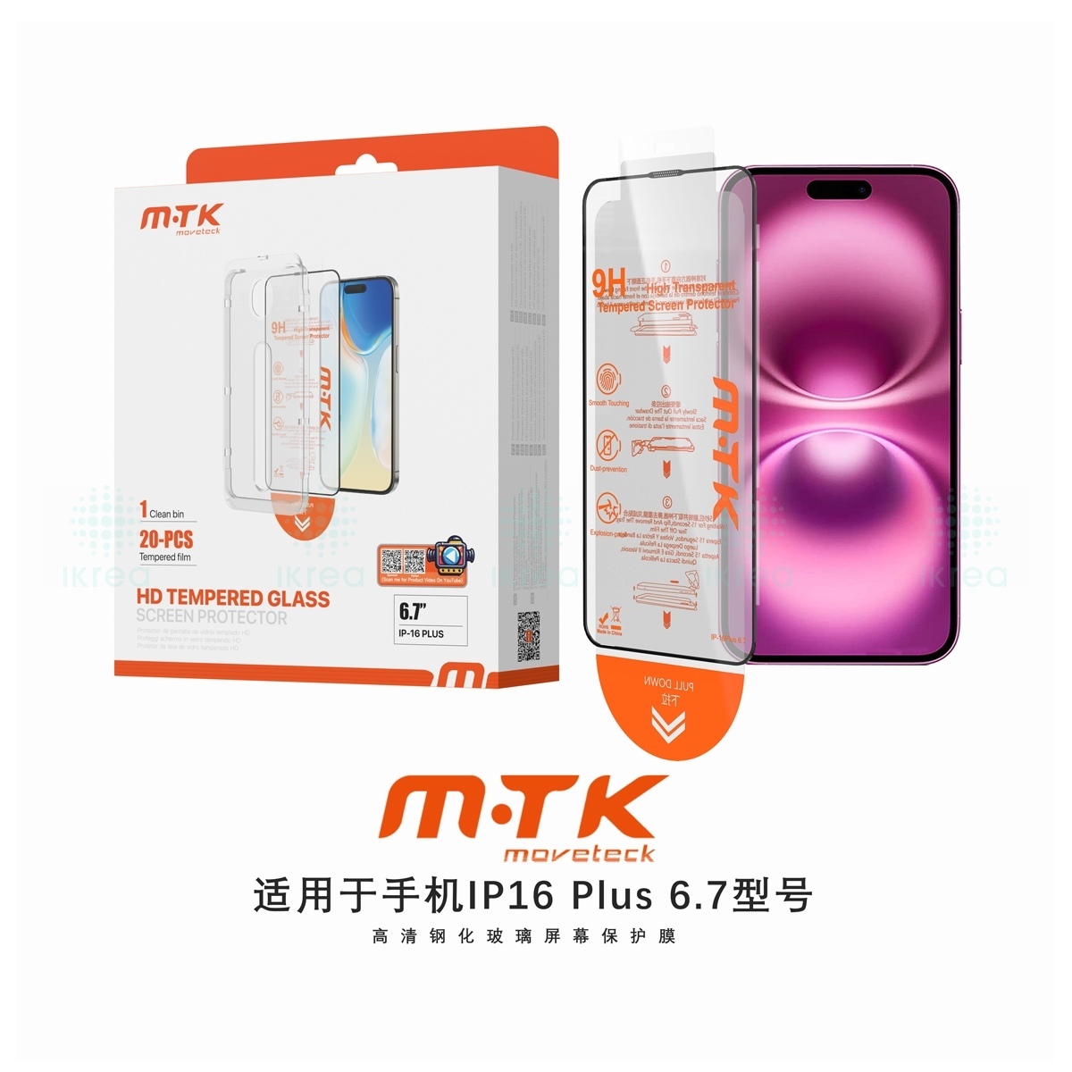 LUXURY PROTECTOR DE CRISTAL HD CON HERRAMIENTA DE AUTO ALINEADO PARA IPHONE 16 PLUS(PACK DE 20PCS)
