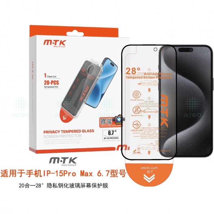LUXURY PROTECTOR DE CRISTAL PRIVACIDAD CON HERRAMIENTA DE AUTO ALINEADO PARA IPHONE 15 PRO MAX(PACK DE 20PCS)