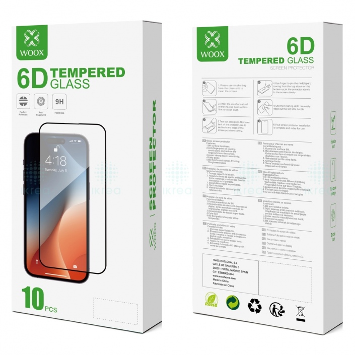 WOOX PROTECTOR TEMPLADO 6D PARA IPHONE 14 PRO NEGRO(10PCS)