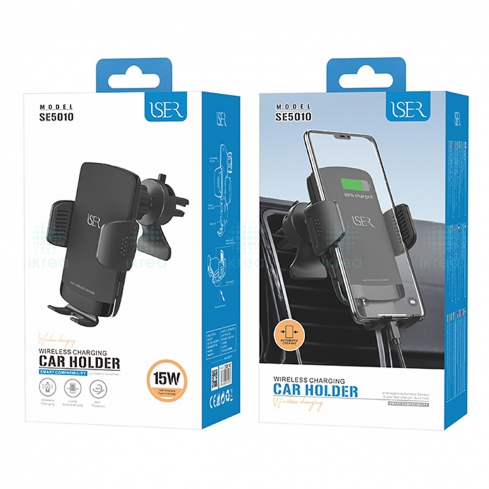 ISER SE5010 SOPORTE UNIVERSAL CON CARGADOR INALÁMBRICO Y BLOQUEO AUTOMÁTICO 15W NEGRO