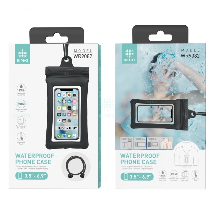 IKREA WR9082 FUNDA PVC CON CORREA IMPERMEABLE PARA MÓVIL 3.5-6.9" IPX8 NEGRO