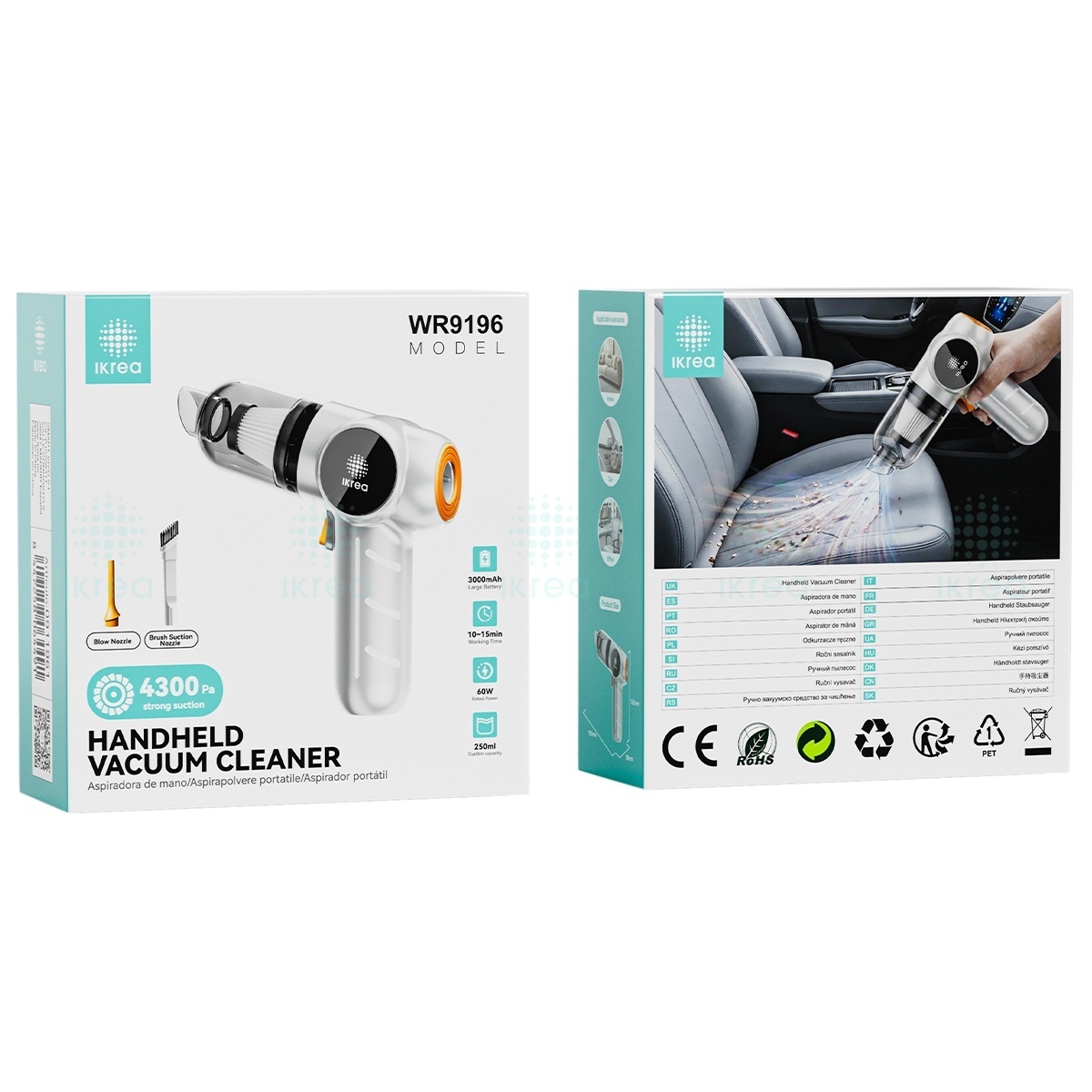 IKREA WR9196 MINI ASPIRADORA INALÁMBRICO DE SUCCIÓN DE MANO 4300PA 3000MAH 60W BLANCO