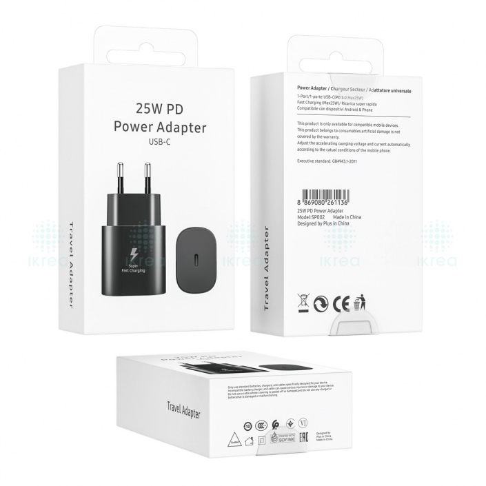 SP002 PD CARGADOR USB-C SIN CABLE 25W NEGRO