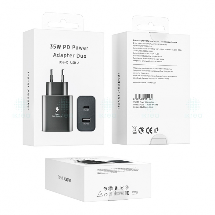 SP003 PD CARGADOR 2 PUERTOS USB/USB-C 35W NEGRO