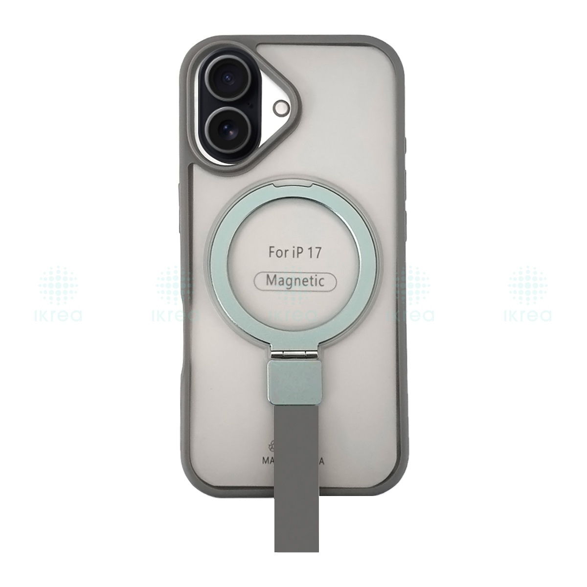 FUNDA MAGNÉTICA DE TACTO SUAVE CON SOPORTE DE ANILLO PARA IPHONE 17 GRIS