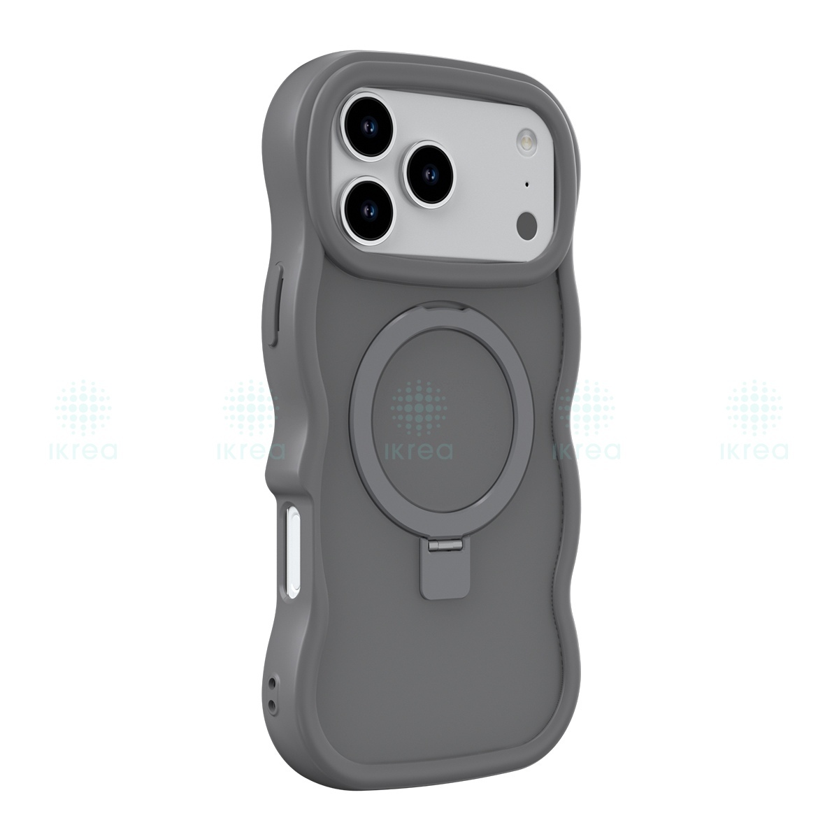 WOOX MX0413 FUNDA ONDULADA CON SOPORTE ANILLO PARA IPHONE 17 PRO MAX GRIS
