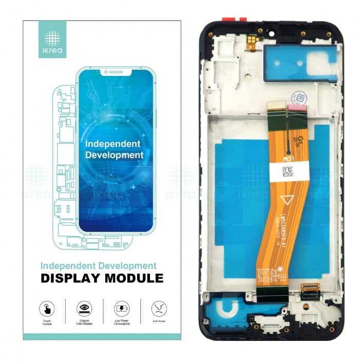 IKREA Pantalla completa con marco para Samsung Galaxy A03 A035G 162mm negra Calidad Premium(Assembled)