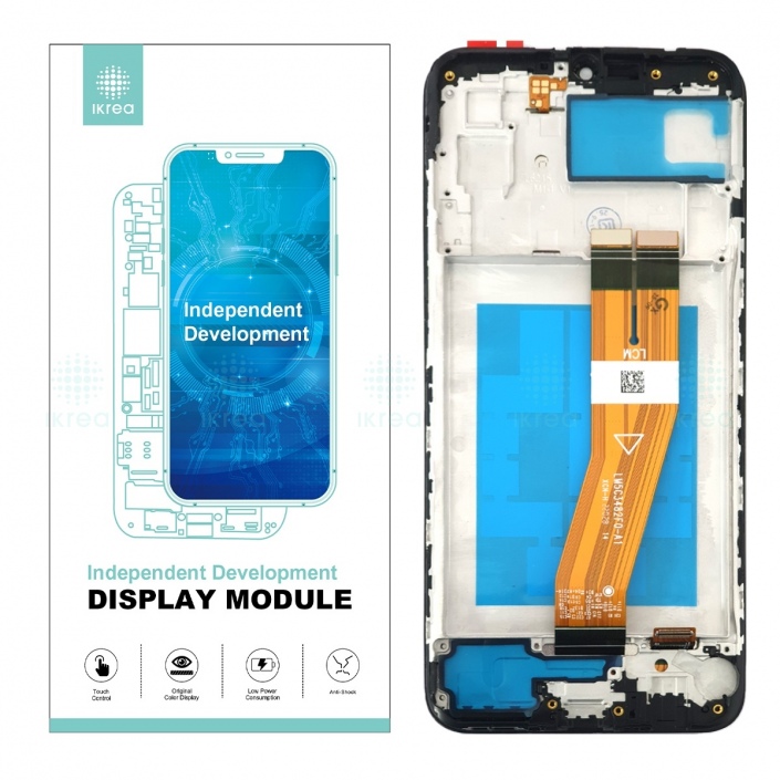 IKREA Pantalla completa con marco para Samsung Galaxy A03 A035F 160mm negra Calidad Premium(Assembled)