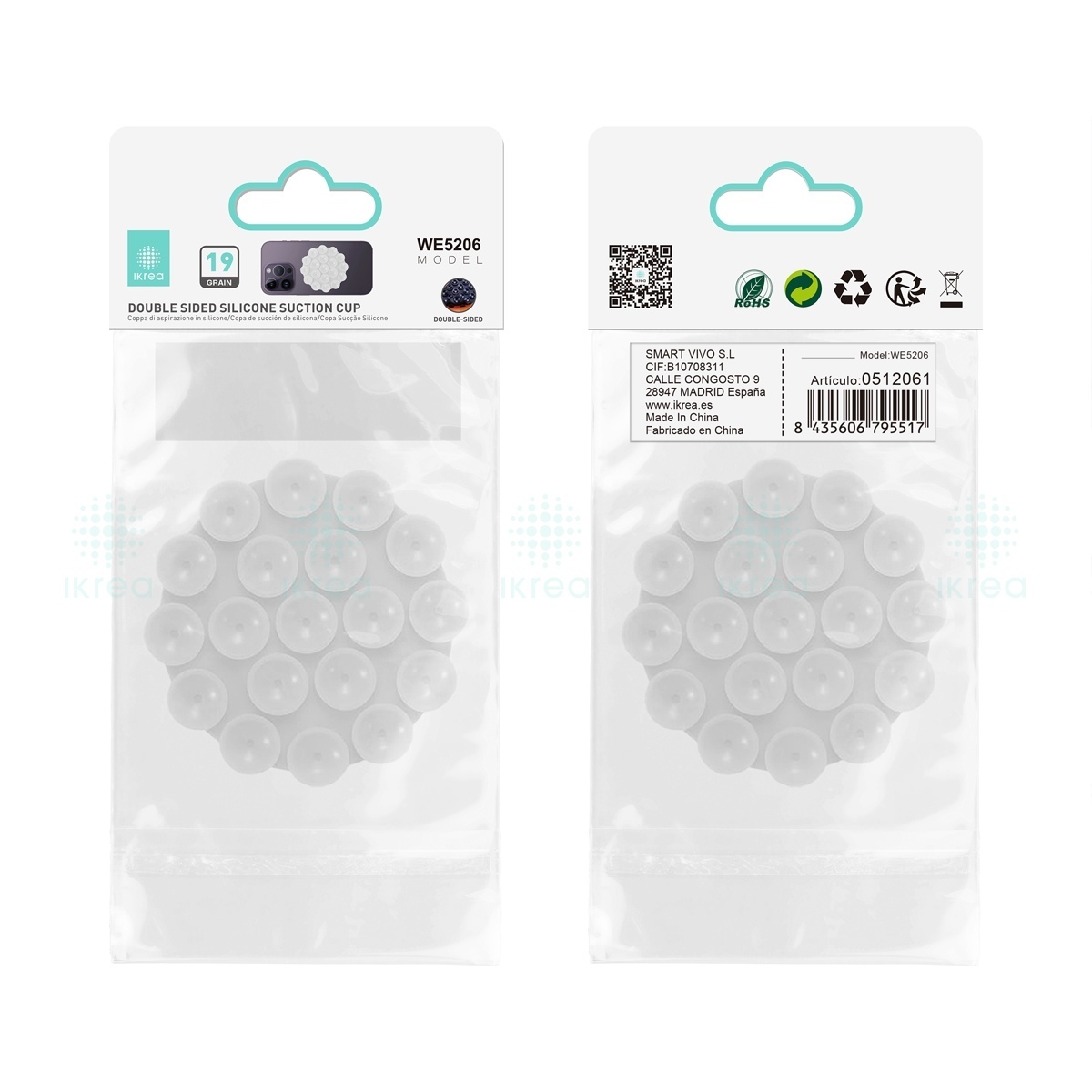 IKREA WE5206 SOPORTE DE SUCCIÓN DOBLE CARA DE SILICONA CON 19 VENTOSAS PARA MÓVIL BLANCO