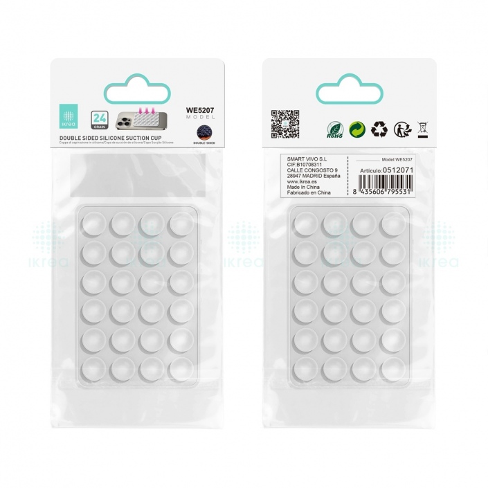 IKREA WE5207 SOPORTE DE SUCCIÓN DOBLE CARA DE SILICONA CON 24 VENTOSAS PARA MÓVIL BLANCO
