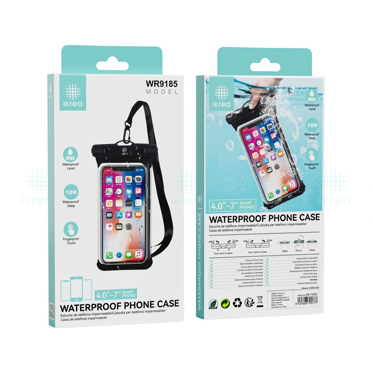 IKREA WR9185 FUNDA CON CORREA IMPERMEABLE PARA MÓVIL 4.0-7'' IPX8 NEGRO