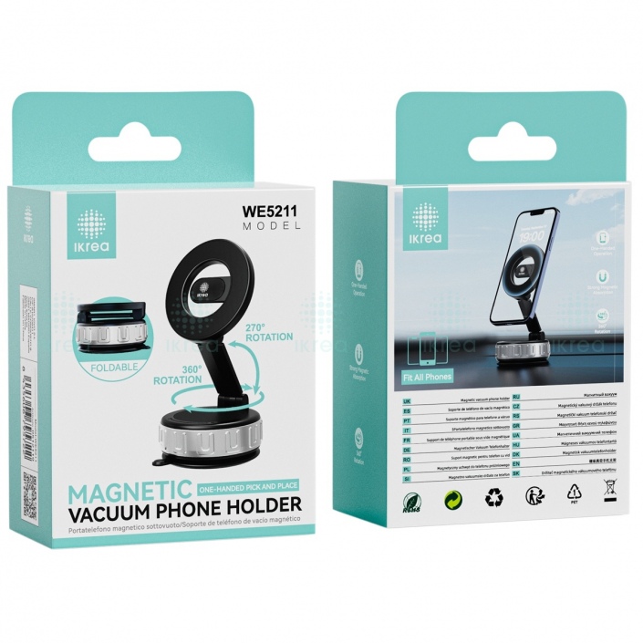 IKREA WE5211 SOPORTE UNIVERSAL MAGNÉTICO DE SUCCIÓN PARA COCHE 360º ROTACIÓN PLATA