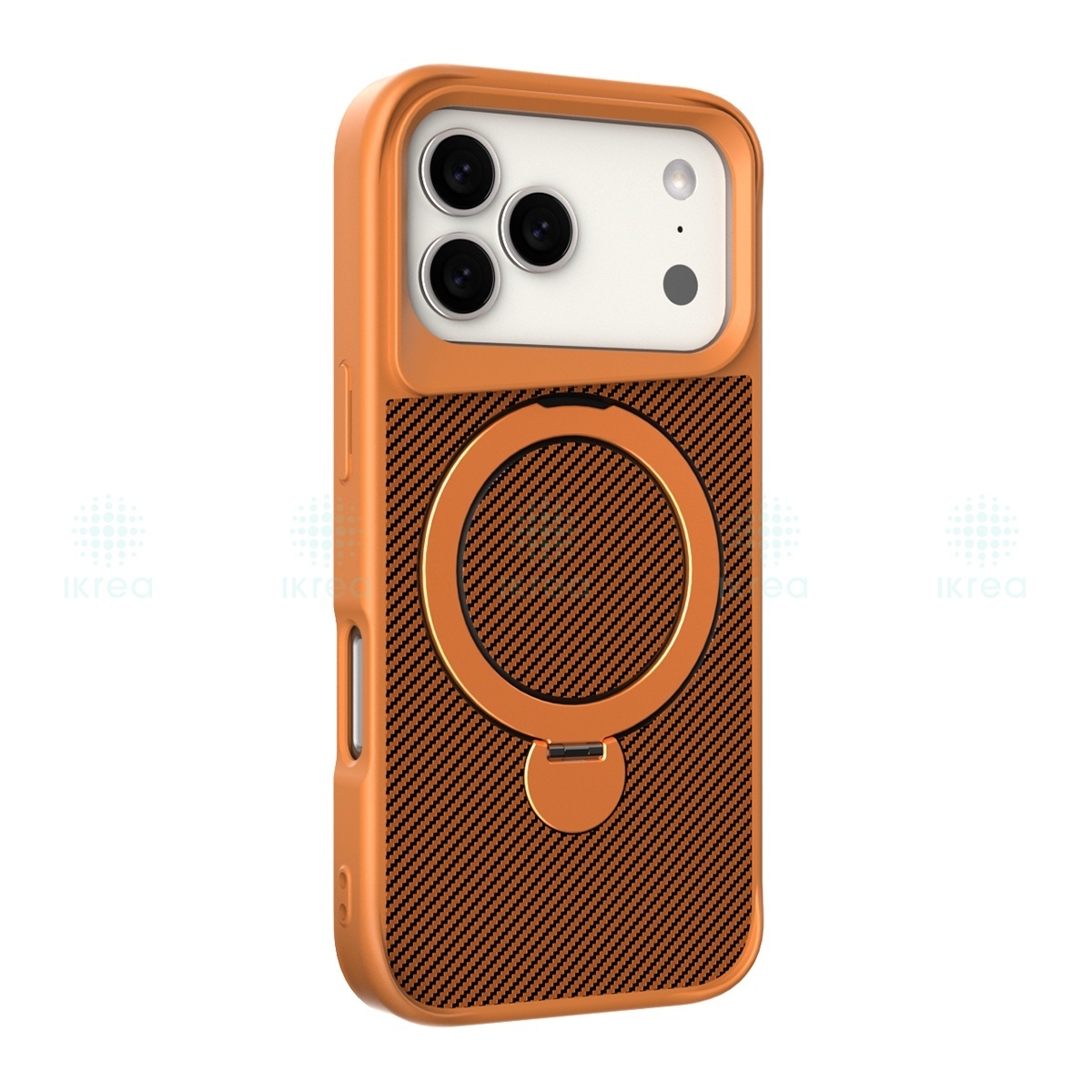 WOOX MX0403 FUNDA DE FIBRA DE CARBONO CON SOPORTE ANILLO 360° PARA IPHONE 17 PRO NARANJA